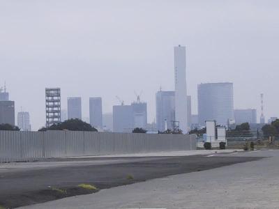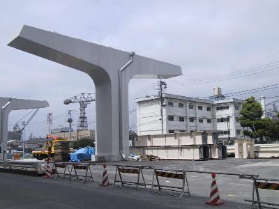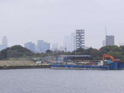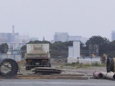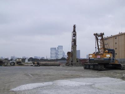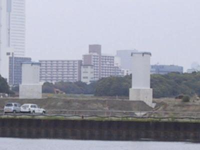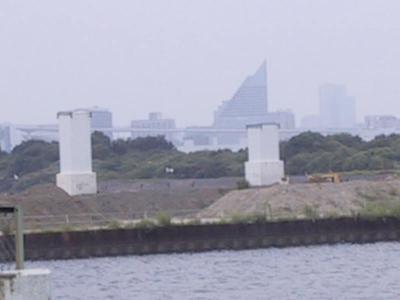 | 東雲運河が埋立てられて、橋脚が立ちはじめました。 大小あわせて5本が確認できます。 |