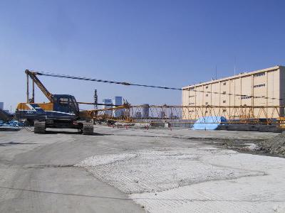 | 有明北付近でもこのような看板が立ちました。 | そしてこれが中の様子です。クレーンが入ってます。 これから工事本格化するものと思われます。 |