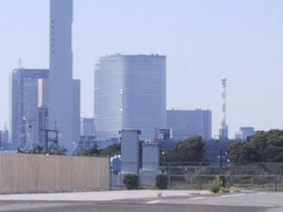 | 下から見上げてみると... | 豊洲(2)方向から豊洲駅を眺めてみます。 (しかし、空の色をみるとやっぱり秋ですね。) |