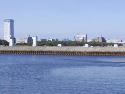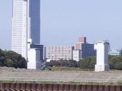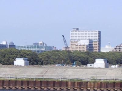 | 奥に2本の橋脚が見えてます。 | 東雲運河を横切る5本の橋脚が見えます。 |