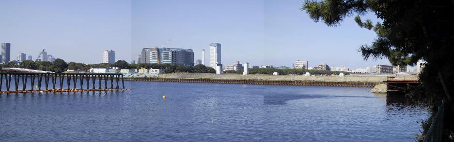 | 東雲運河のパノラマ写真です。<−豊洲(1)−−−有明北−> | |