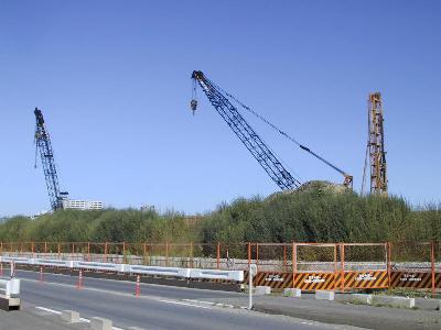| そのとなりに2本目になる工事が進められています。 | 背の高い重機も3基はいっているのが分かります。 |