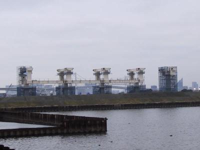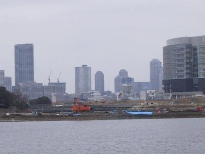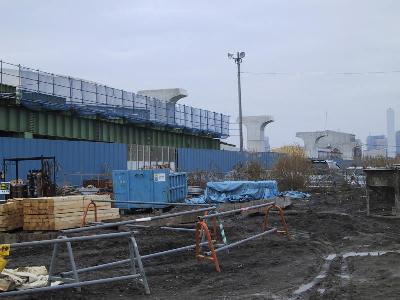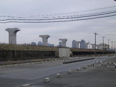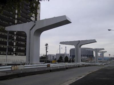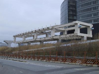 | ということで、今回は初めて、有明付近まで来てみました。 見えている5本の橋脚は右上のものです。 手前に建設中の橋梁がありますが、こちらは道路ということですが、 このさらに上に、ゆりかもめの軌道ができると思われるので、 関連はありそうです。 |