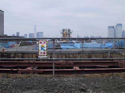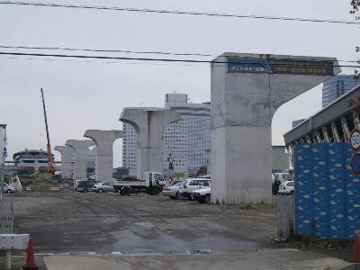 | 豊洲−豊洲(2)間は目下工事真っ最中です。 手前1番目から6番目の橋脚は完成しました。 |