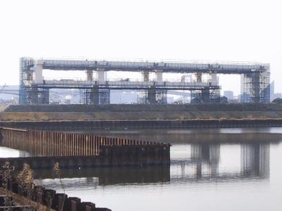 | 一番豊洲よりの部分です。ここには橋脚基礎が立てられます。 今はその準備のための基礎工事をしています。 |