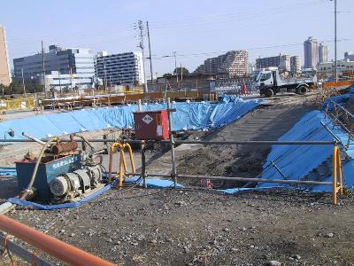 | 有明北駅は、2週間前から目立った変化は見られません。 | 有明北付近、ここの部分には5本の橋脚が立ちますが 今は基礎工事の真っ最中です。 |