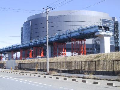 | 有明北駅です。 カバーがとれました。 | 有明−有明北間の橋脚もかなりできてきました。 |