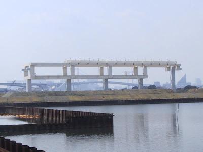 | 有明北−有明間の橋脚です。現在3本が工事中ですが、2週間前から比べて変化はみられません。 | |