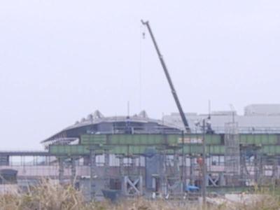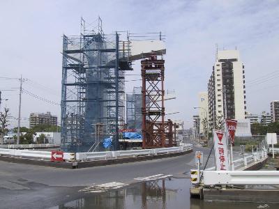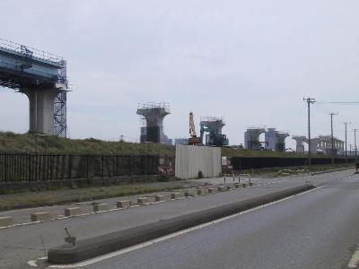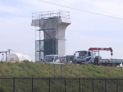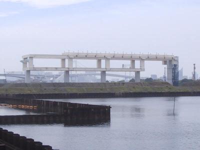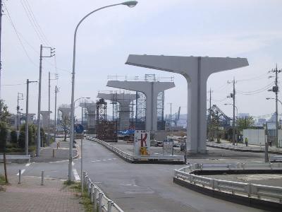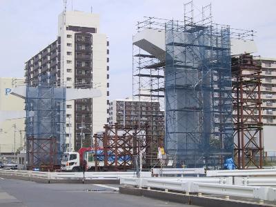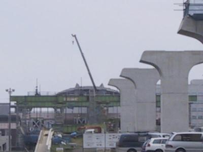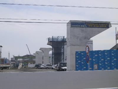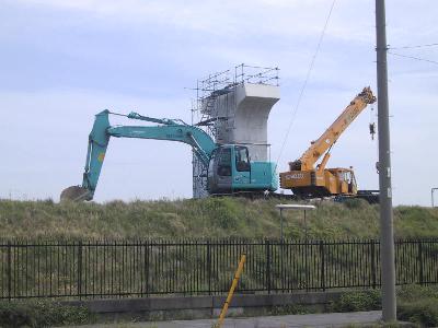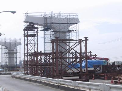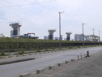 | 別角度から | 奥の橋脚との間に補助橋脚があるところをみると、 まもなくこの間に橋梁がかけられるものと思われます。 |