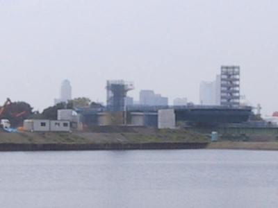 | 1つ先の橋脚でも作業が始まっています。 | 奥に見えているのが豊洲(1)駅になります。 その3本手前の橋脚まで準備作業が行われています。 |