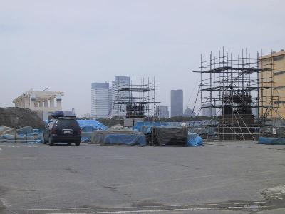 | 豊洲方から豊洲(2)方面を見てみます。 | 2週間前まで基礎部分しかなかった上に橋脚が立ちました。 |
