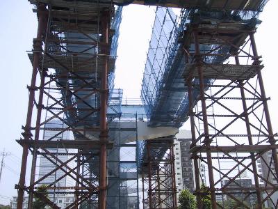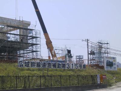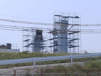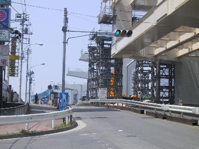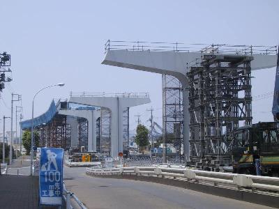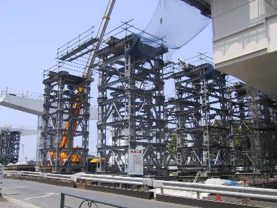 橋脚部分に近づいてみました。2本が対になっています。 形状からみて、まもなく、真ん中で繋がる感じです。 |