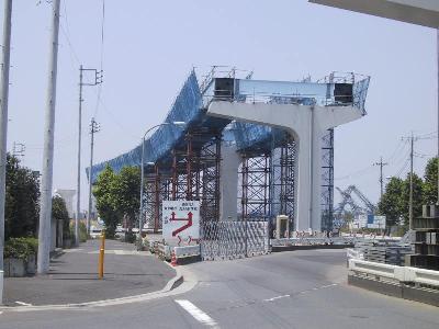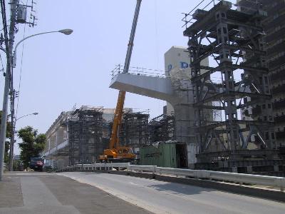| 今度は豊洲(2)方面を見てみます。手前にも補助橋脚が設置されました。 | 先週も紹介した橋梁部分です。 |