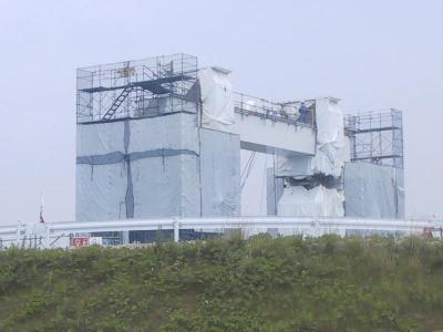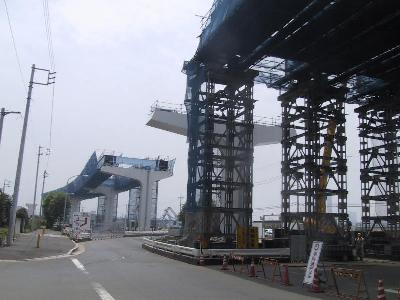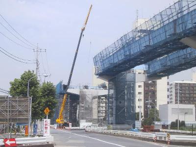 クレーンの部分に近づいてみました。 まもなく、この先にも高架橋が伸びる模様です。 |