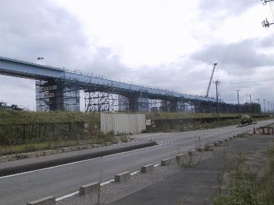 | この橋梁も手前に延びています。 | 現在、奥の線だけが延びて、手前はこれからです。 |