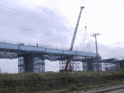 | 国道372号線と首都高速湾岸線を越える場所です。 補助橋脚が乱立しているのが見えます。 |