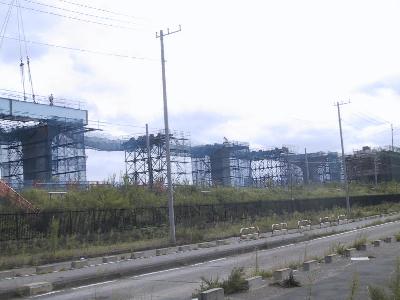 | さらに有明方面に進みます。 次の橋脚もまもなく完成します。 | 有明方面を眺めます。 |