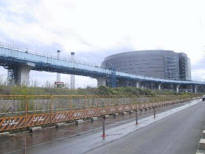 豊洲(1)駅からさらに先です。ここで90度曲がり有明北駅に 向かいます。ここにも補助橋脚がたちました。 |