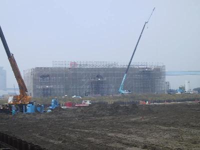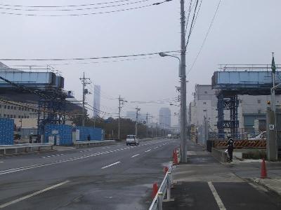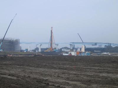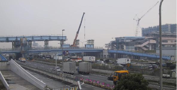 | 有明側から有明北側を見てみます。 | 道路ぎりぎりまで橋梁が延びました。 |