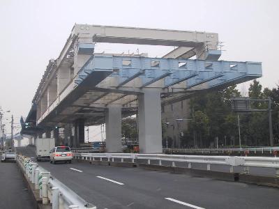 | その橋梁の下には、道路に書ける橋梁がすでに準備してありました。 | 国道357号線と首都高湾岸線を越える場所です。 途中まで架かりました。 |