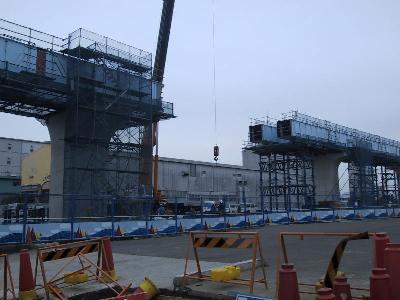 | 有明−豊洲間で橋梁が繋がっていないのはこの部分だけになりました。 | 有明北駅に橋梁が繋がりました。 |