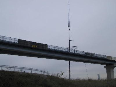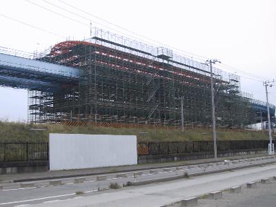 | いよいよ軌道敷(走行路)の工事がはじまりました。 | 橋梁に足場が組まれました。 |