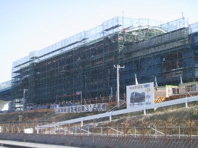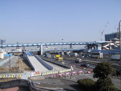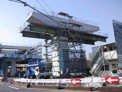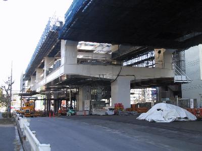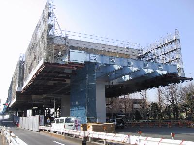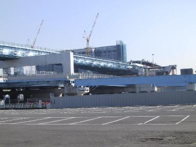 2004年になり、新年早々でありますが、今回もかなり進捗がありました。主に豊洲〜豊洲(1)間で軌道敷の工事がかなり進んでいるようです。下から見上げる形でしか取材できないので、残念です。