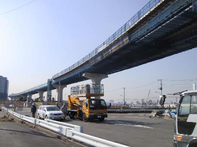 | 豊洲駅前交差点の一番近くに立っている橋脚にも変化が 出てきました。 |