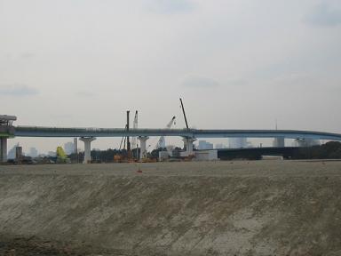 | 有明北から有明方面を眺めます。 下の方ではまだいろいろ工事をしています。 |