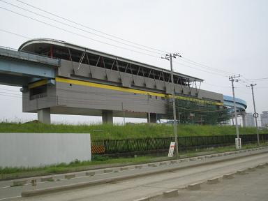 | 有明北駅 | このあたりも軌道敷の工事が本格化しているようです。 背の高いクレーンが入っています。 |