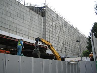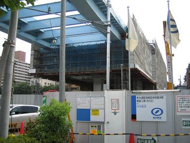 | 駅舎はまだ工事の真っ最中です。 手前の部分は、歩道をふさいでの工事です。 有楽町線との連絡通路でも作ってるのでしょうか。 |