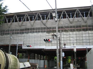 | 駅舎の屋根部分の姿を現しました。 | 別角度から |