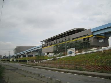 | 駅出入口付近の工事はまだこれからのようです。 | 有明側から有明北駅を眺めています。 この付近の軌道敷も完成している模様です。 |