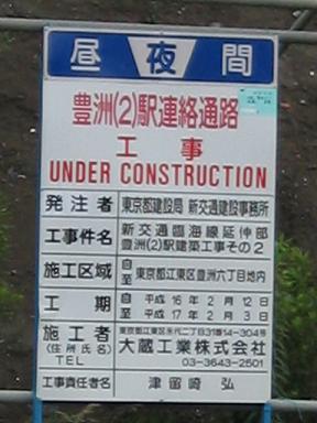 | 豊洲(2)駅連絡通路工事 来年の2月3日まで続きます。 | 橋梁工事は8月27日に完成予定です。 |