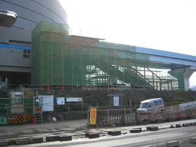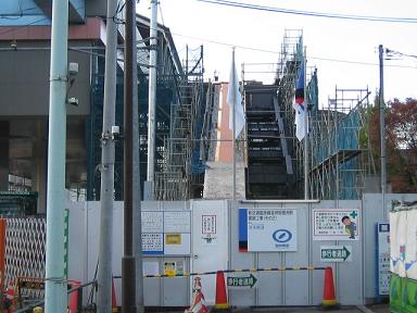 | 豊洲(2)駅でも出入口の階段設置工事が始まっています。 | もう少し近づいてみます。 |