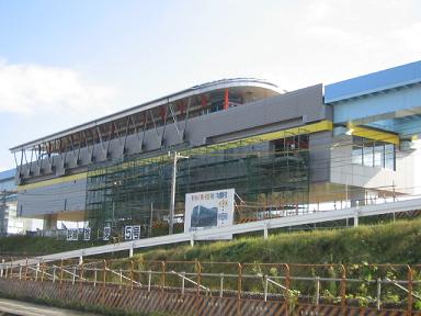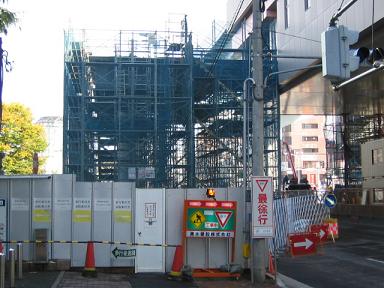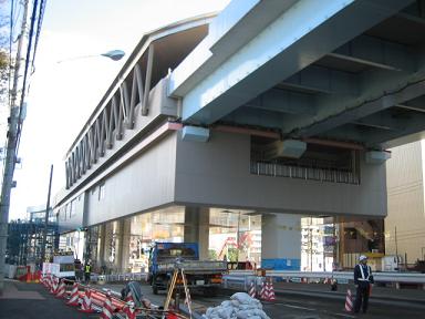 別角度から。こちら側から見てもちょっとはっきりしません。 駅舎自体は以前から変化は見られませんので、 もしクレーンが駅関係の工事だとしても、まだ始まったばかり だと思います。 |
