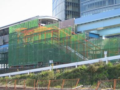 | 豊洲公園側に出入口の階段が設置されます。 しかし、こちら側には地下鉄の出入口がなく、このままでは 乗り換えがちょっと不便になります。ゆりかもめの開業に合わせて ここにも地下鉄の出入口が出来ると便利なのですが... |