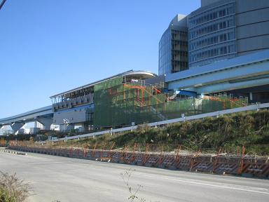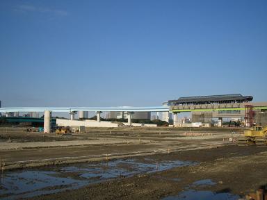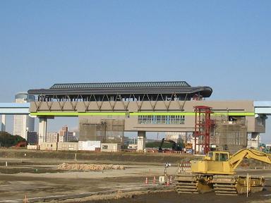 | 有明北駅 手前に骨組みの塔ができました。 エレベーターになるのでしょうか。 |