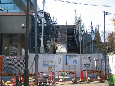 | 奥に豊洲センタービルが見えています。 | 駅出入口付近の様子。工事が進んできています。 |