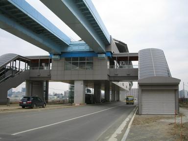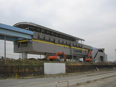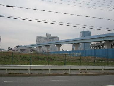 豊洲(1)駅 手前にクレーンが入っていますが、これは