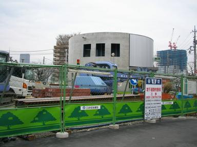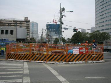 豊洲駅前交差点内。地下鉄有楽町線連絡通路の工事です。 |