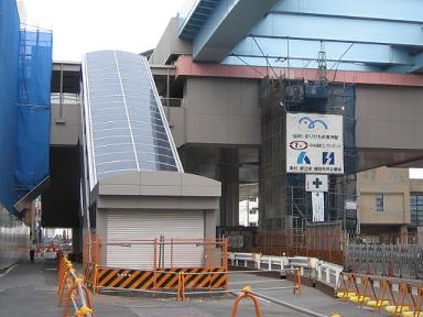 | 新豊洲側から見ています。駅舎の下にはまだショベルカーが 入っています。 |