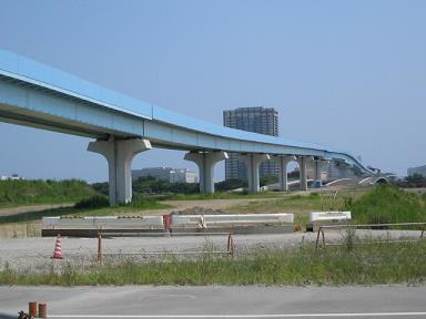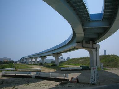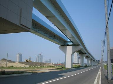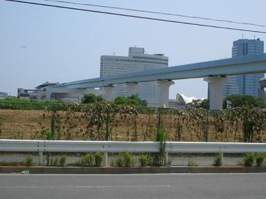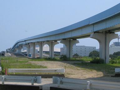 | 奥に小さく有明テニスの森駅が写っています。 ちなみに軌道上上空に小さく写ってるのは羽田空港へと着陸体制に 入っている飛行機です。UFOではありませんのであしからず。(笑) |