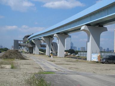 | 有明方面から有明テニスの森駅方面を眺めています。 | 有明テニスの森駅 こちらも施設はすでに完成しています。 |