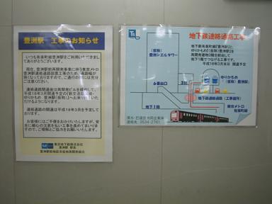 | 工事の案内。有楽町線の駅から直接ゆりかもめへ乗り換えられる ようにするための工事と書いてあります。 |