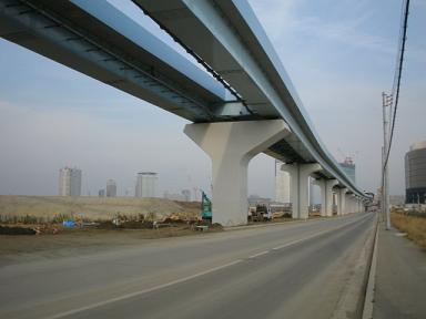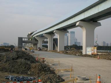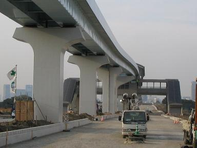先日、開業日が2006年3月27日(月)というプレス発表がありました。開業までいよいよあと4ヶ月あまりになり、ゆりかもめと平行して進められている下の道路の工事も佳境に入ってきました。またそろそろ試運転列車が入ると思うのですが、まだ目撃はできていません。