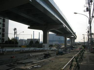 | 有明駅方面を見ています。 こちらも下の道路の整備が進んできました。 まもなく、ここに大きな交差点が出来ることになります。 |