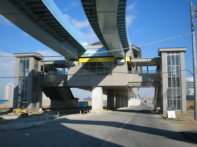 市場前側から見る新豊洲駅 |