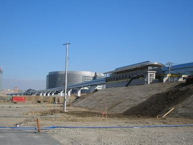 2005年も押し迫って参りました。毎年恒例となりましたが、今年最後の取材ということで、いつもより少し詳しく見ていきます。開業まであと3ヶ月。すでに外観上の工事はすでに完成しており、ここ7、8ヶ月は大きな変化はない1年でした。あとは付近の整備を進め、開業の日を待つばかりのようです。