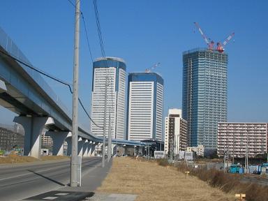 | 新豊洲側から豊洲駅見ています。 | 新豊洲付近から豊洲駅を見ています。 バックの高層ビル群も完成に近づいています。 |